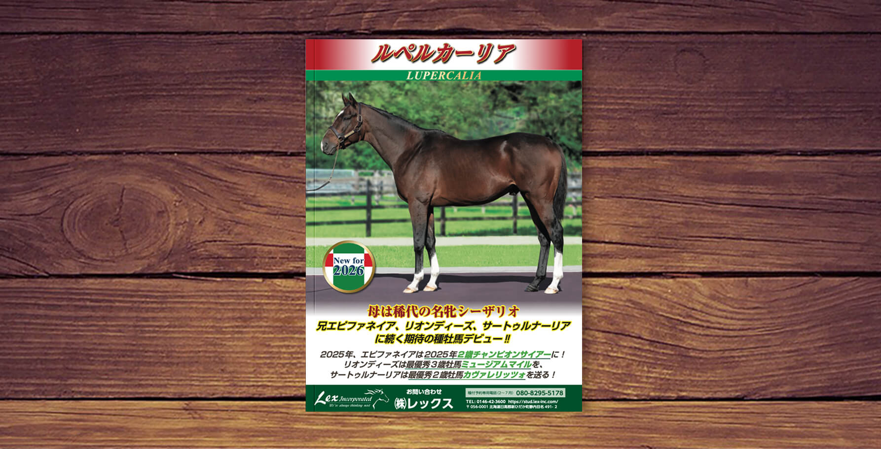 2026年にレックススタッドで繋養する種牡馬の総合カタログです。