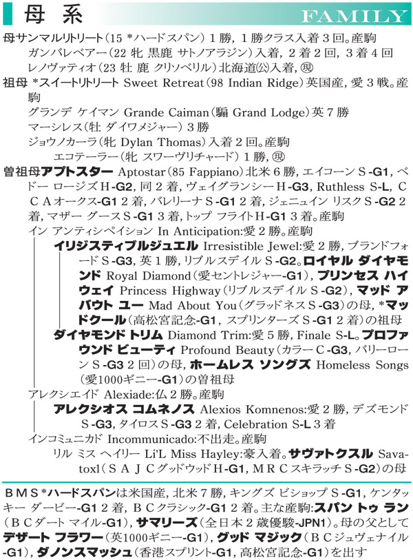 牡・鹿毛 3月11日生まれ 生産:ヴェルサイユファーム