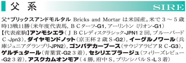 牝・栗毛 5月19日生まれ 生産:岡田スタッド