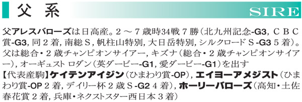 牡・鹿毛 3月25日生まれ 生産:本田土寿