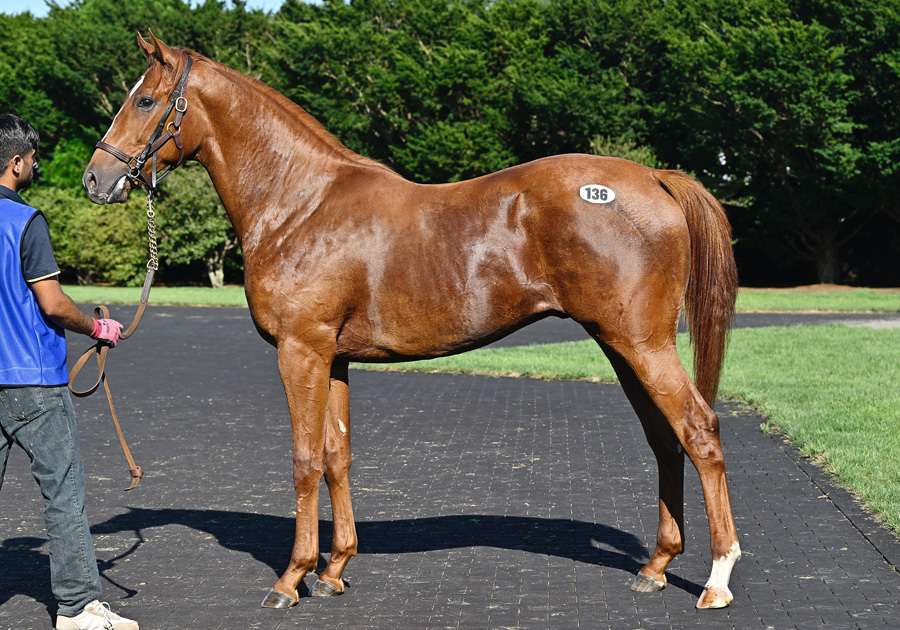●本馬のポイント 父は世界中で多数のG1馬を輩出しているトップクラスのサイアーです。産駒はスピードと成長力を兼備しており、日本で生まれた馬達もレースを重ねながら着実にステップアップし、今年もJRAで3頭が4つの重賞を勝っています。母はロジータ記念で2着と好走した実力の持ち主で、子ども達もダートを主戦場としています。 本馬は体格に恵まれ、筋骨隆々でパワフルな馬体を有していることからダート向きと見ていますが、父系の特徴が色濃くなれば、芝でも頭角を現すかもしれません。マイル前後のレースで持ち前のパワーを発揮し、直線で一気に突き抜けるような走りを期待しています。 ◇測尺 体高:160cm 胸囲:184cm 管囲:20.6cm *2025年11月時点 |